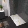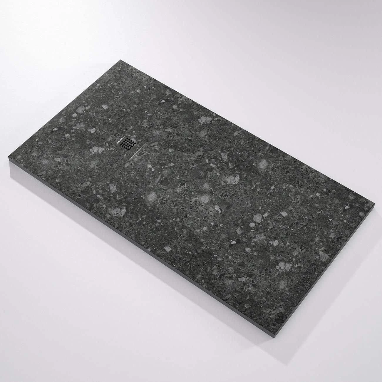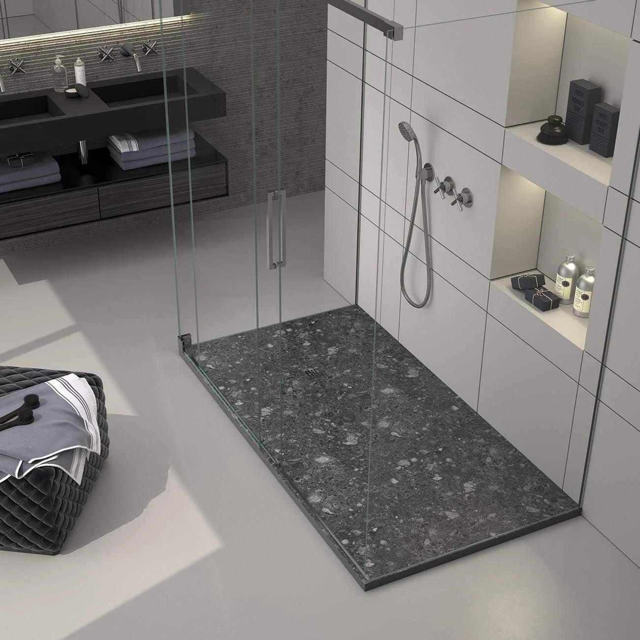 The black terrazo shower base is the perfect starting piece for your walk-in shower. Constructed of a combination of natural and man-made materials, this shower base is easy to install and features an anti-slip gel coating for added safety. The shower tray can be installed flush against the floor or above the floor.