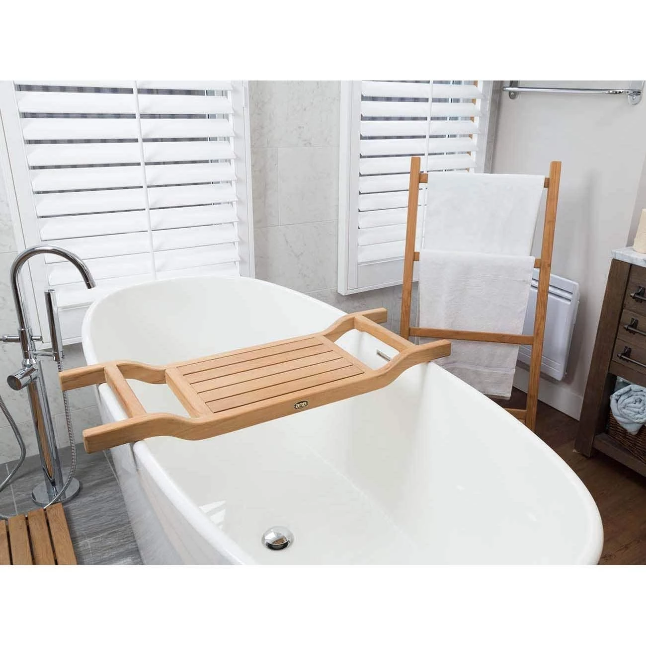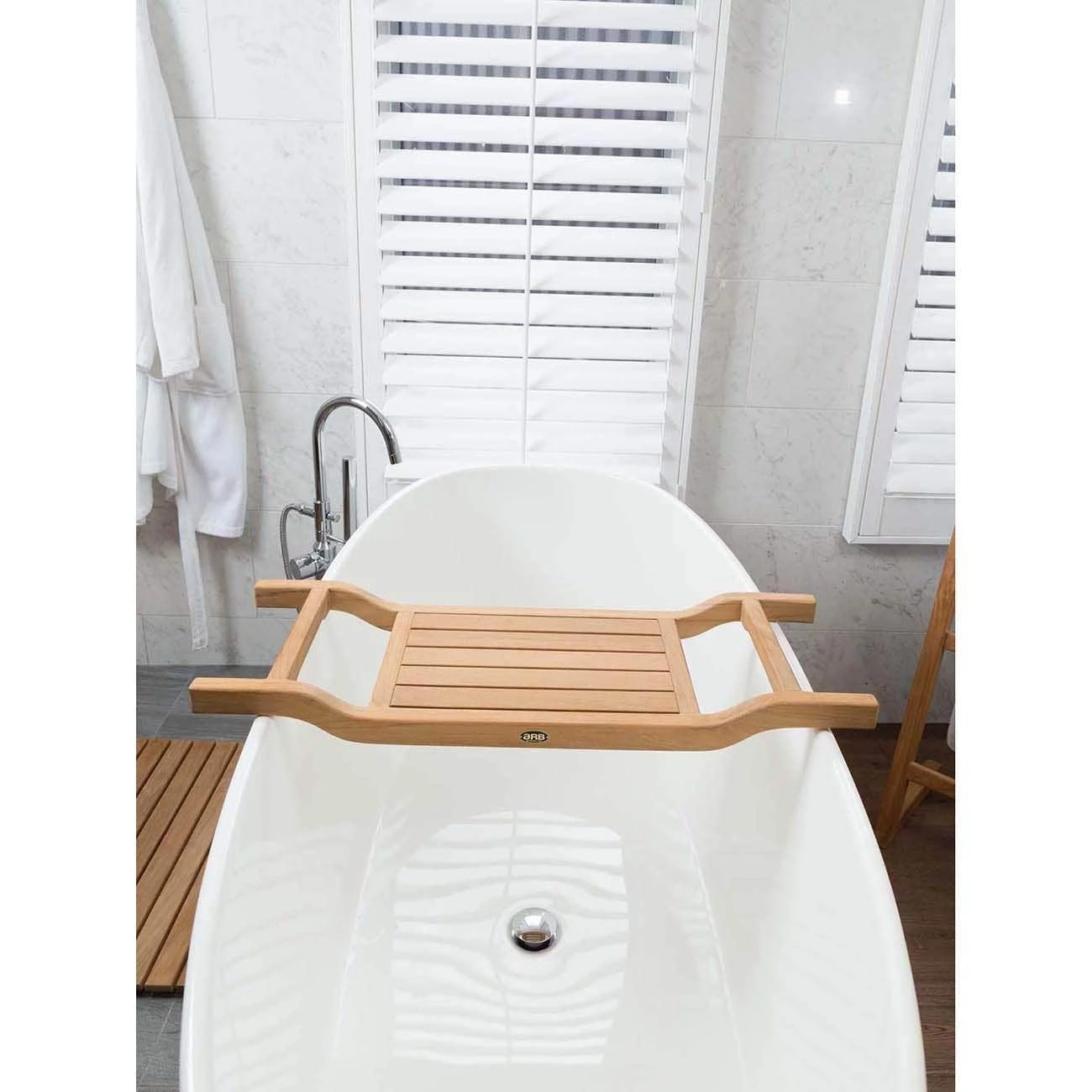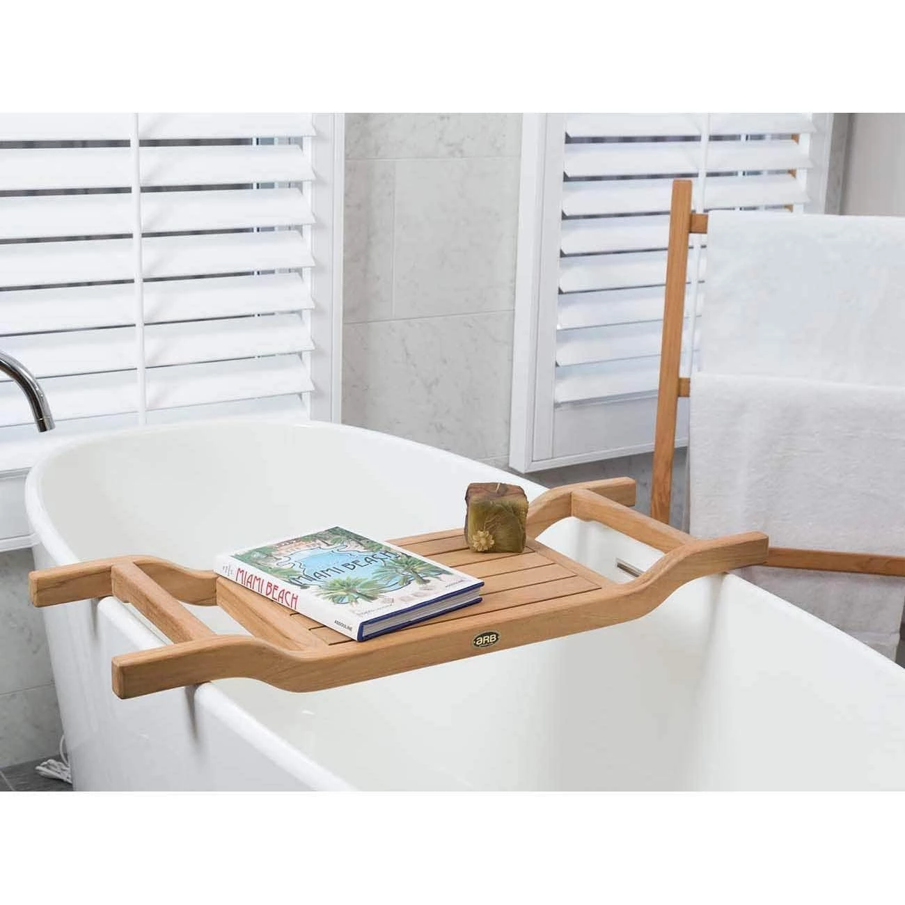Sit back and relax while soaking in the suds. Keep everything you need close by for maximum relaxation with the Coach tub caddy by ARB Teak. It will become a staple in your bath routine in no time. It is perfect for holding your glass of wine, book, candle or hand towel.
