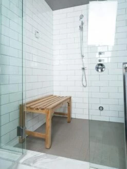 This stylish, hip bench adds beauty and functionality to your shower. Not only is it comfortable and sturdy, but it will also make the room shine with its simple elegance and the wood’s warm finish, making it a perfect statement piece for your bathroom.