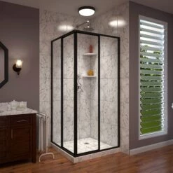 The DreamLine Cornerview sliding shower enclosure provides a modern solution to maximize space with a corner installation and center opening design. The Cornerview has a straight edged style that provides a comfortable showering space. The Cornerview can fit into virtually any corner, making it perfect for smaller bathrooms. Instantly upgrade the look and feel of your bath space with the Cornerview sliding shower enclosure. Choose DreamLine for the ultimate solution for your shower project.