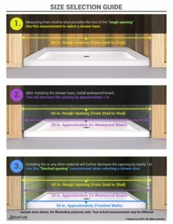 - IMPORTANT! All measurements should be taken only AFTER walls are finished (tile, back walls, etc.)