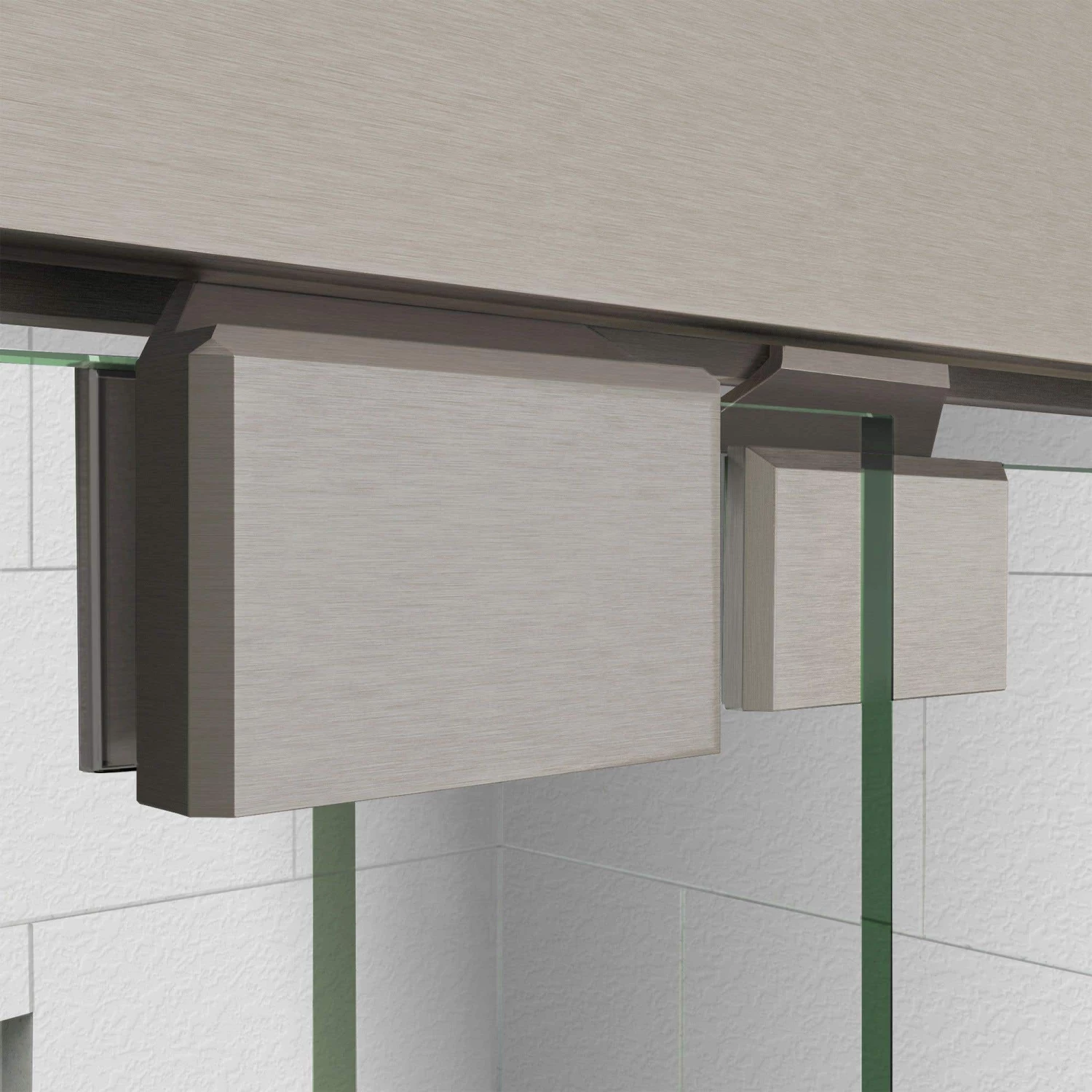 - Frameless glass design creates an open, airy feel; Anodized aluminum guiderails and wall profiles