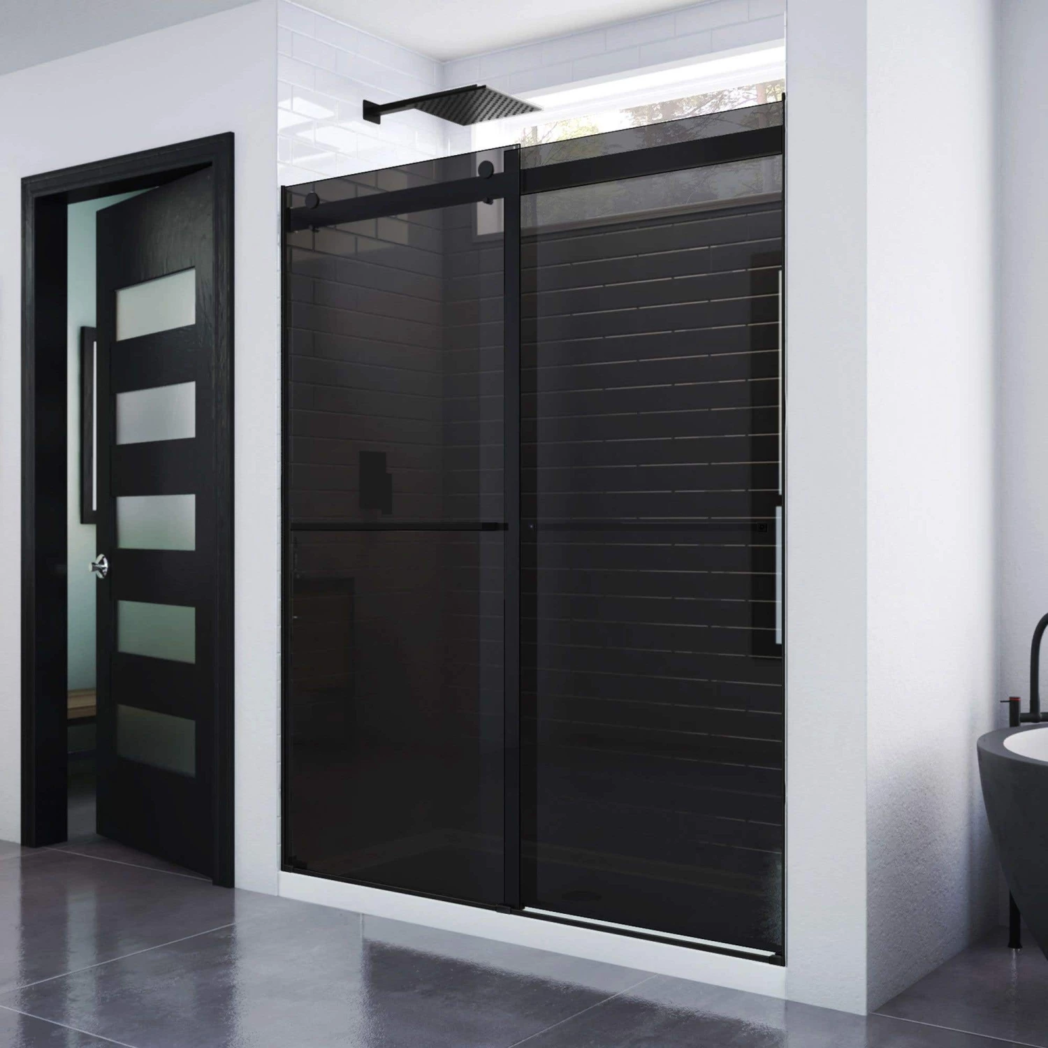 - Double sliding bypass configuration allows entry to the shower from left or right side