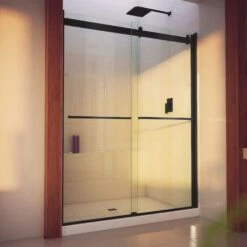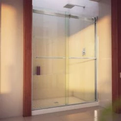 - Double sliding bypass configuration allows entry to the shower from left or right side