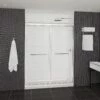 - Door Hardware Finish: Chrome; Base Color: White; Drain Location: Center