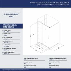 DreamLine Flex 34-1/2 Inch D X 38-42 Inch W X 72 In H Semi-Frameless Pivot Shower Enclosure