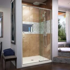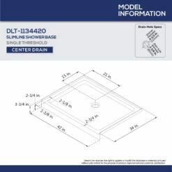 DreamLine Flex 34 Inch D X 42 Inch W X 74-3/4 Inch H Semi-Frameless Pivot Shower Door With Center Drain Shower Base