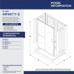 The DreamLine Infinity-Z sliding shower or tub door offers classic style with a modern touch. The Infinity-Z will transform your bathroom with a beautiful balance of functionality, elegance and sophistication. A variety of finishes and glass options will match any bathroom décor. The SlimLine shower base and Qwall Backwalls completes the look with a low profile design for a sleek modern look. Choose the DreamLine Infinity-Z model for the ultimate solution to your shower project.