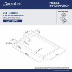 - Base and Backwall Color: White; Drain Location: Left (see technical drawing for exact drain location)