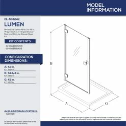 - Kit includes: Lumen Shower Door and SlimLine Shower Base