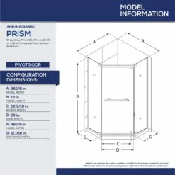 The DreamLine Prism neo-angle shower enclosure features a corner design and a modern shape that is the perfect complement to any bathroom. The Prism maximizes space and creates an open appearance with a frameless glass design and outstanding style. Glass is treated with DreamLine exclusive ClearMax water and stain resistant glass coating for water to bead and roll off, making upkeep a breeze. Stainless steel pivot bars provide durability and stability reinforcement and a full length magnetic door latch creates water tight closure.