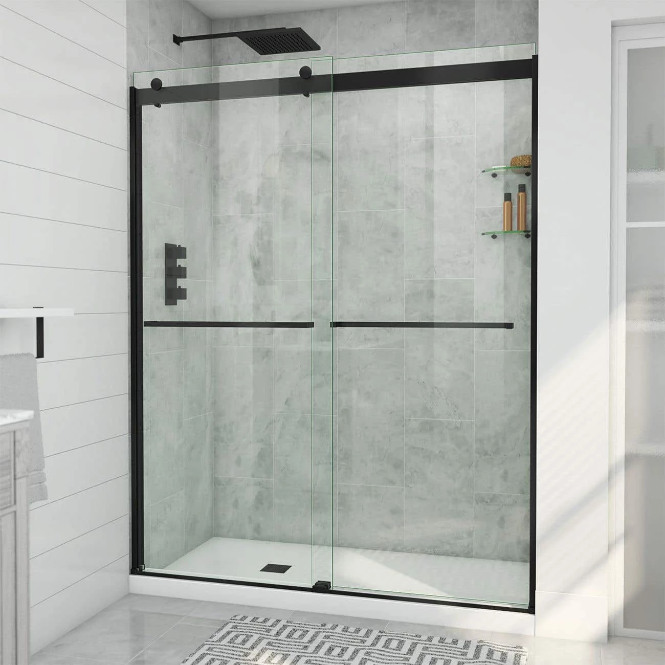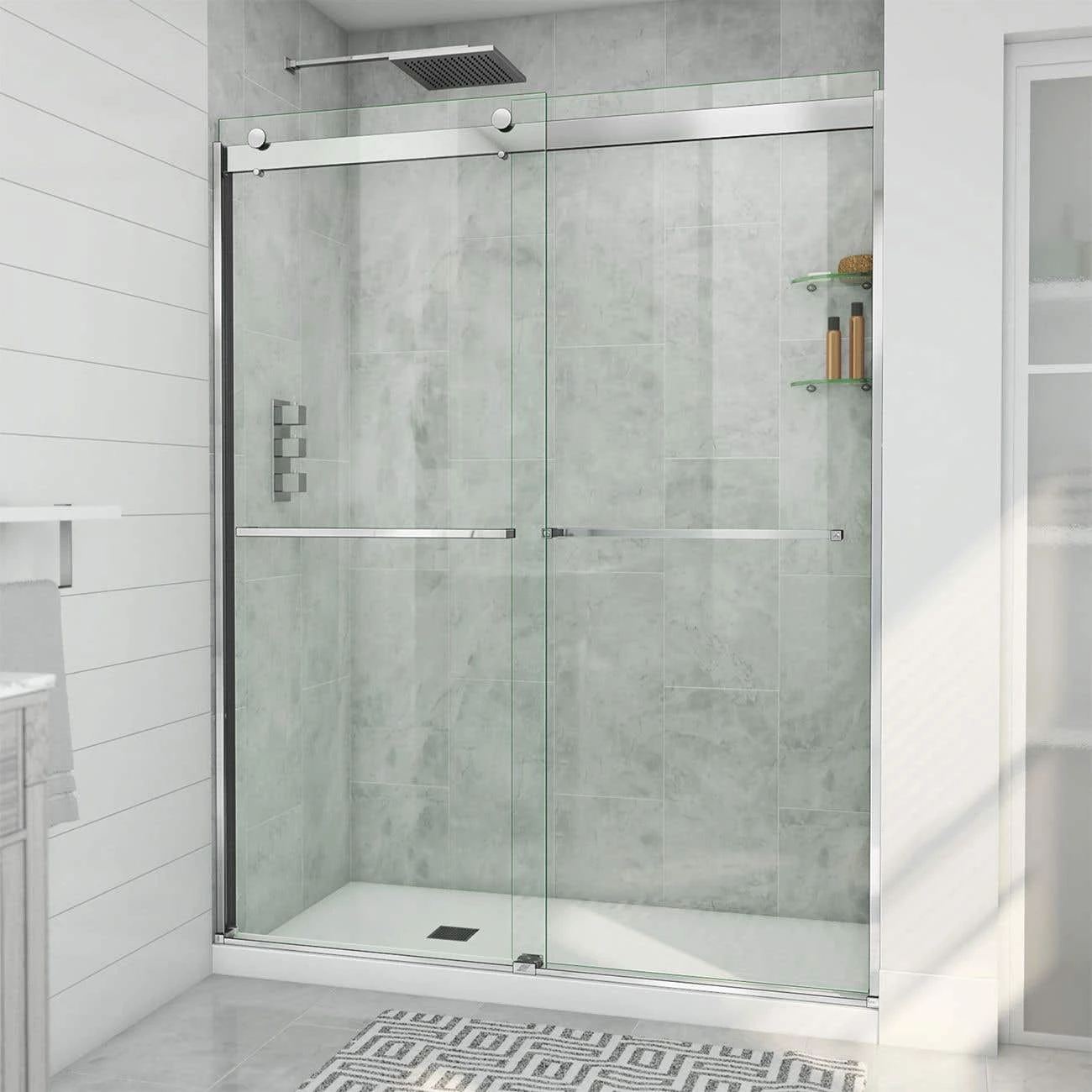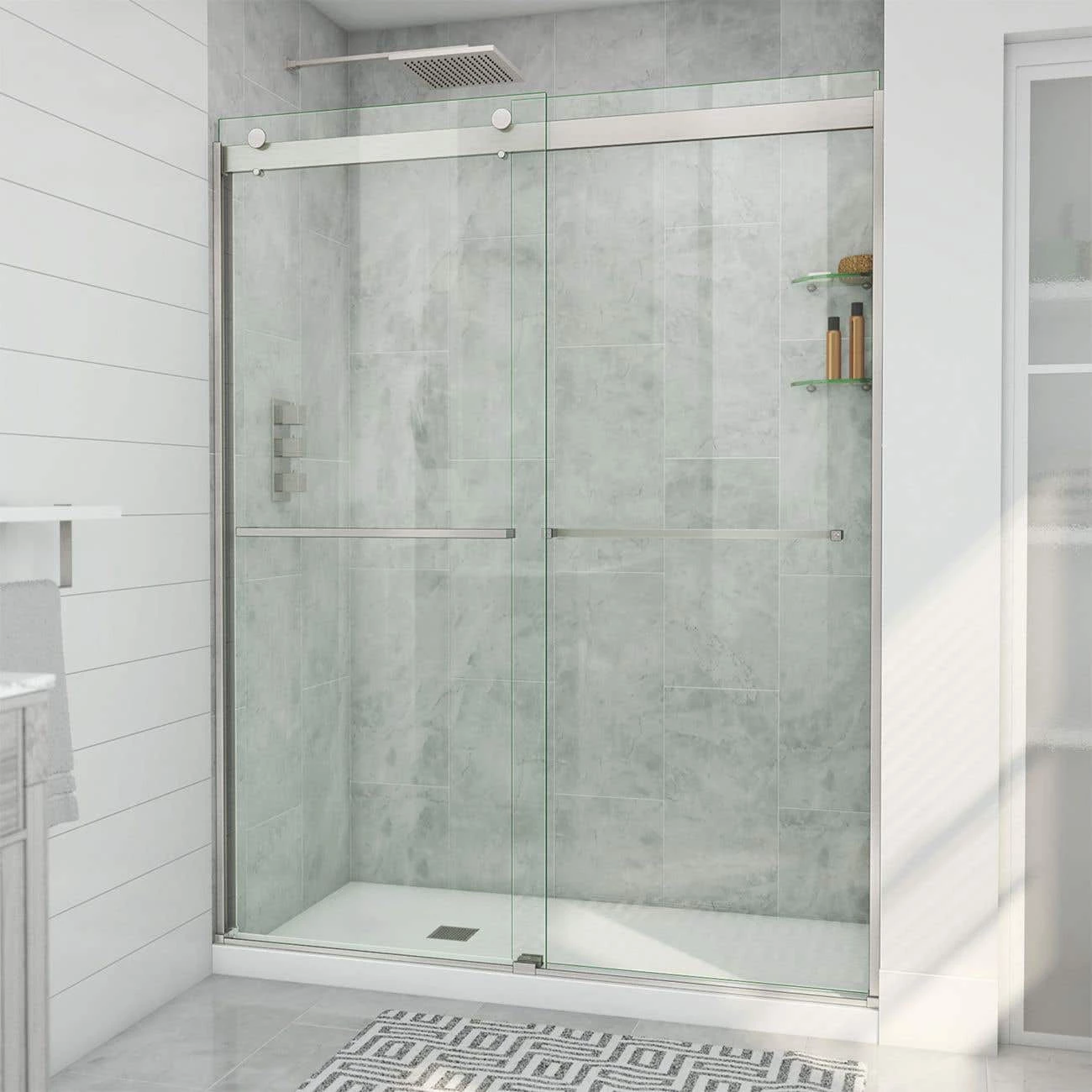 - Double sliding bypass configuration for left or right side entry to the shower