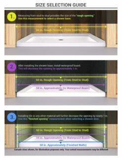 - IMPORTANT! All measurements should be taken only AFTER walls are finished (tile, back walls, etc.)