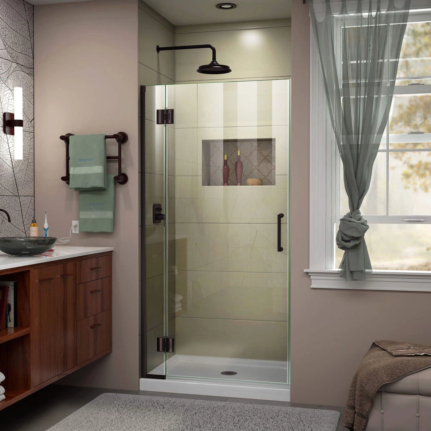 The DreamLine Unidoor-X is a frameless shower door, tub door or enclosure that features a luxurious modern design, complementing the architectural details, tile patterns and the composition of your bath space. Unidoor-X showcases sleek, clean lines to enhance any shower space, creating a stunning appearance. DreamLine exclusive ClearMax water repellant and stain resistant glass coating adds superior protection from stains and is nearly maintenance-free. Unidoor-X is part of DreamLine Unidoor collection, the most versatile line of shower doors and enclosures on the market.