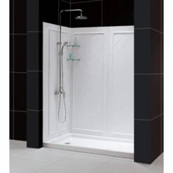 DreamLine Visions 30 Inch D X 60 Inch W X 76-3/4 Inch H Sliding Shower Door With Shower Base And Back Wall
