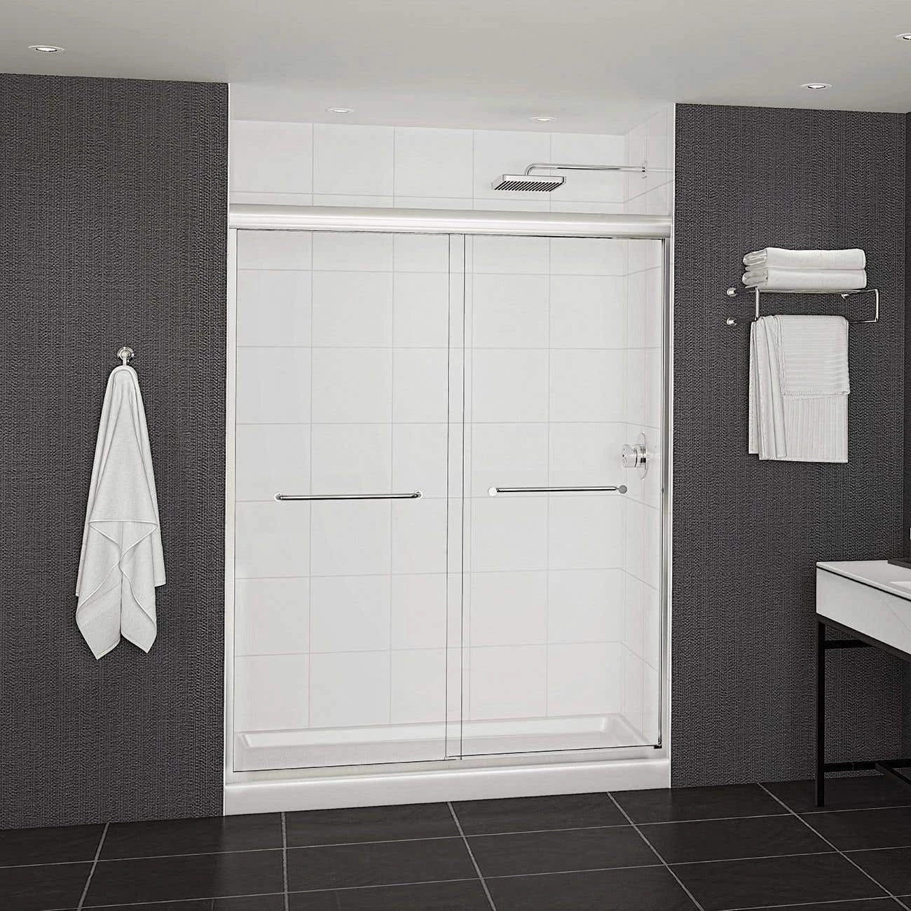 These 55-59 inch semi-frameless doors for the shower are intentionally designed to make your space feel and look bigger without adding excessive visual features. You’ll delight in the graceful simplicity these semi-frameless sliding shower doors bring to the room.