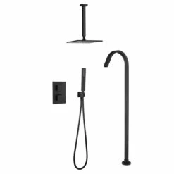 Update your bathroom and enhance your showering experience with a luxurious rainfall shower set. The wall-mounted showerhead is positioned above your head, simulating the feeling of a rainfall cascading down on you. The hand shower boasts a rectangular design that fits comfortably in your hand. When not in use, the hand shower rests in a wall-mounted dock.